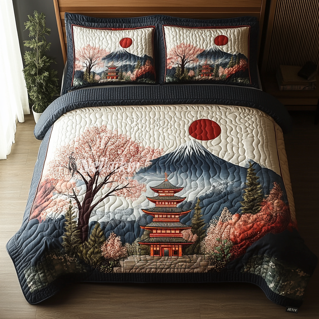 Japanese Pagoda Delight 3-Piece Quilted Bedding Set NCU0DV5451