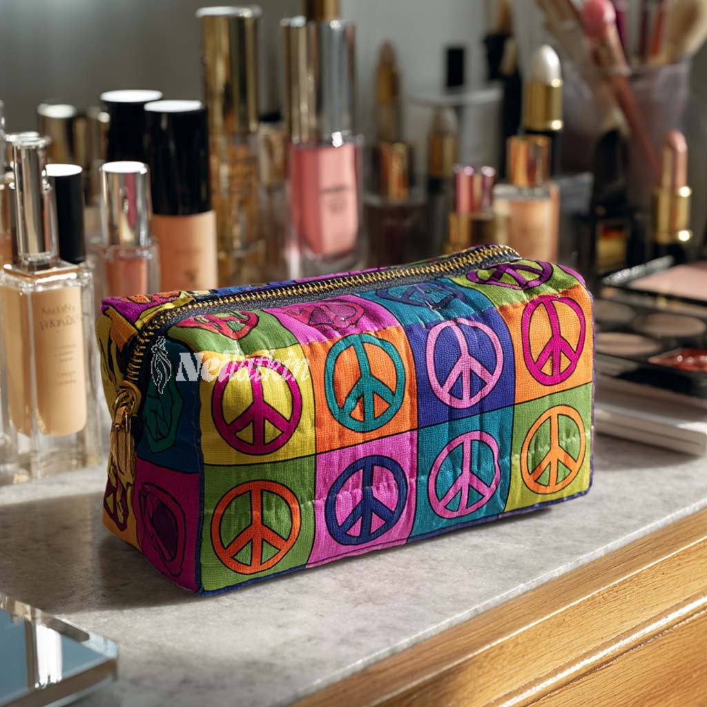 Retro Pop Peace Quilted Makeup Bag NCU0XD879