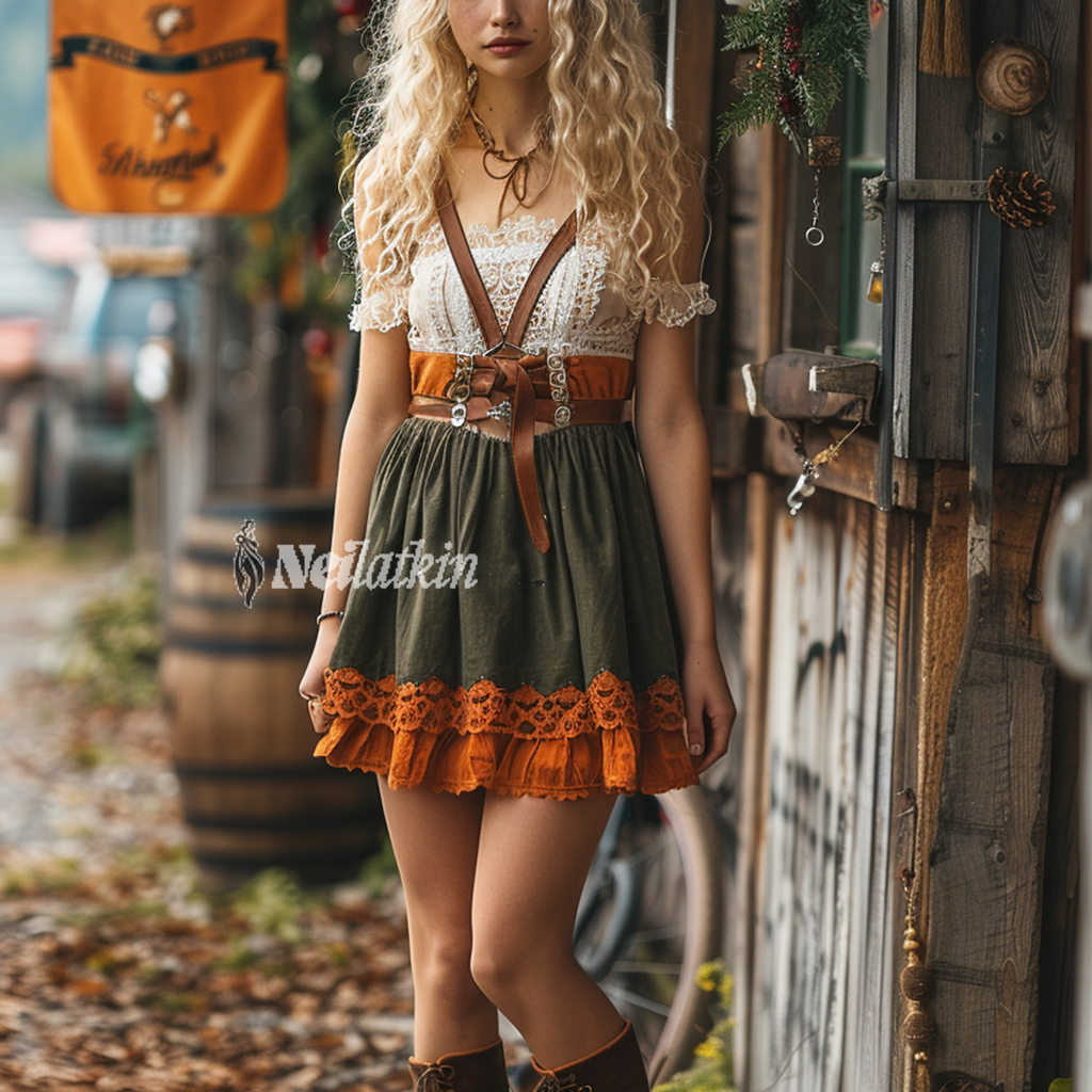 Women's Retro Western Style Halter Top & Short Skirt Two-piece Suit